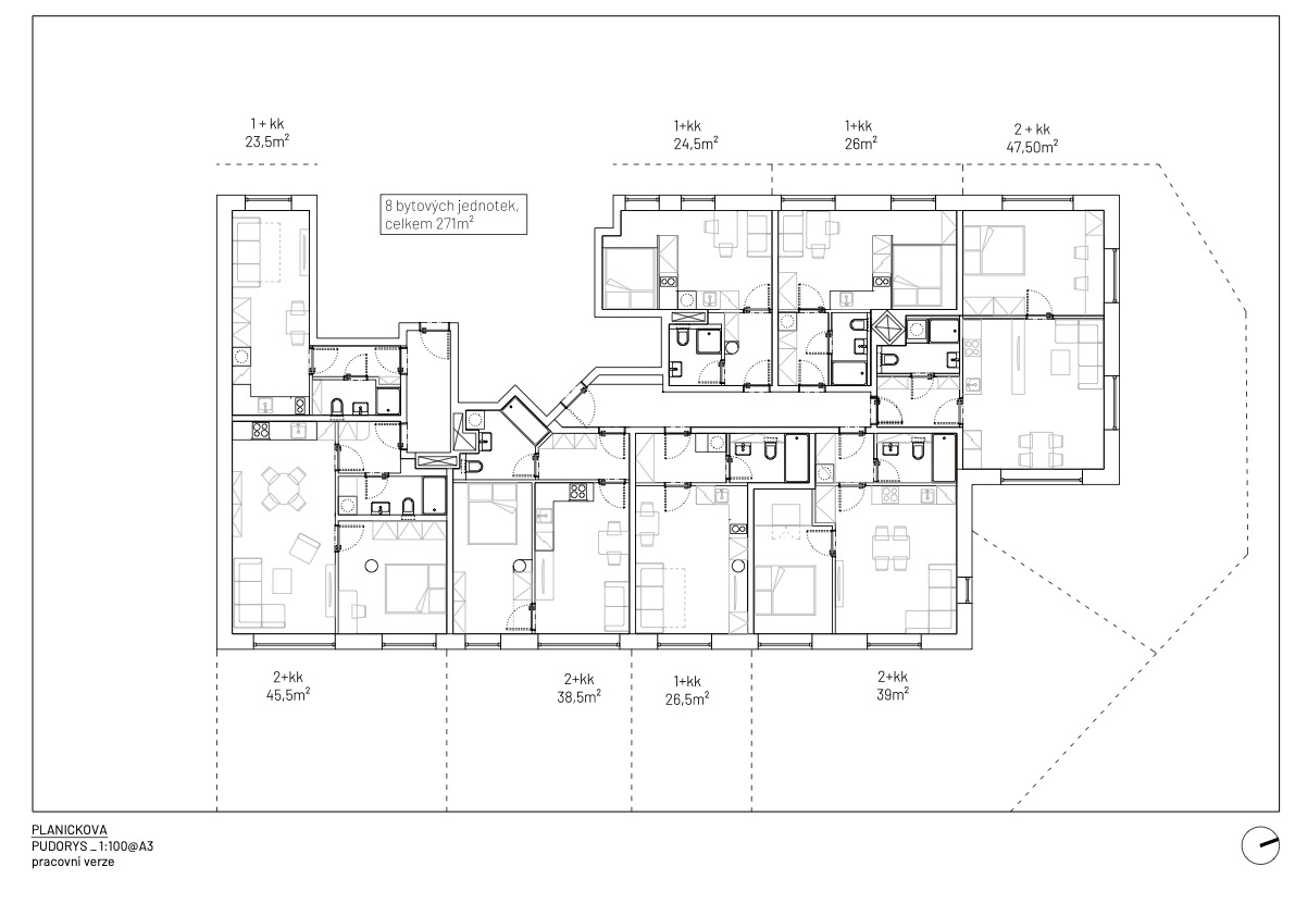 Ve spolupráci s architektem vznikl návrh projektu, který maximalizuje využití prostoru a zároveň přináší pocit luxusu a pohodlí. Každý byt je navržen tak, aby byl moderní, kompaktní a praktický – ideální pro městské bydlení i dlouhodobý pronájem.